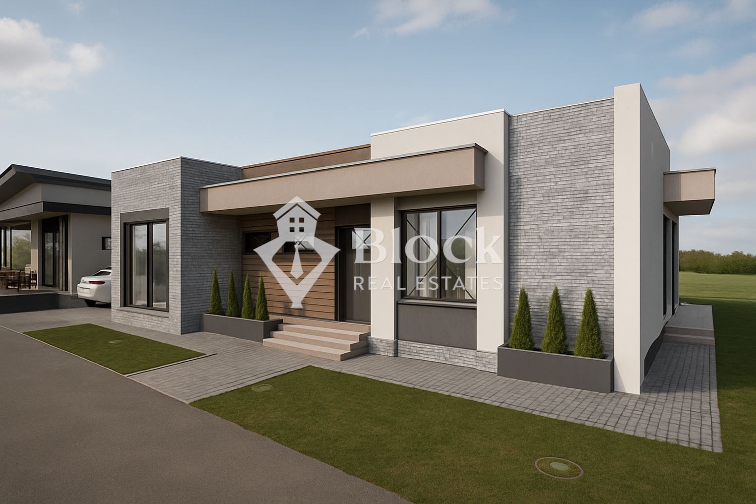 Block недвижими имоти предлага за продажба стилна едноетажна къща с модерна архитектура, разположена в спокойна и зелена част на село Гурмазово. Имотът е с функционално разпределение и предлага комфорт и уют за цялото семейство. Застроена площ от 115 кв.м. със самосоятелен двор от 403 кв.м., състои се от входно антре, три спални, просторен хол с трапезария и кухненски бокс, две бани с тоалетна.